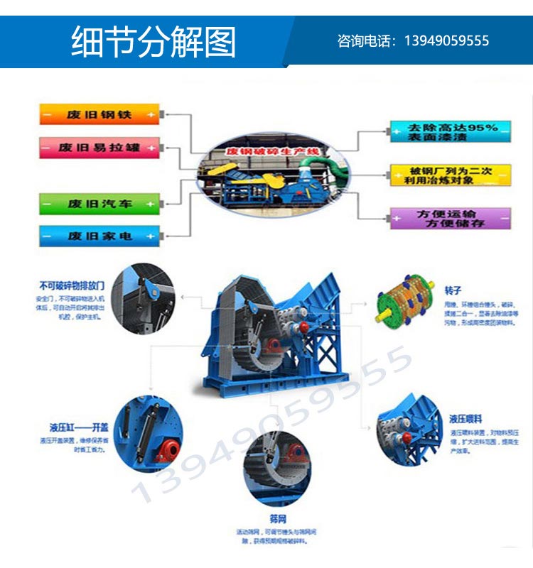 廢鋼破碎機(jī),廢鋼破碎機(jī)生產(chǎn)線: 廢鋼破碎機(jī) 廢鋼破碎機(jī)視頻: 廢鋼破碎機(jī),廢鋼破碎機(jī)生產(chǎn)線用于加工報(bào)廢汽車車體、馬口鐵類、舊家電、自行車、舊冰箱、彩鋼瓦、空罐等下等廢料使之成為上級(jí)的制鋼原...